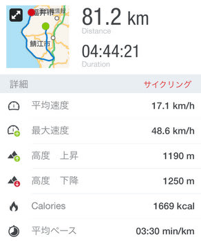 平均速度はズゥ~と付けっぱなしだからあてにならないが、1ヶ月ぶりのライドで距離的にはこんなもんでしょ