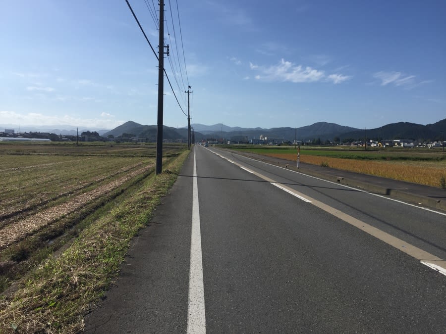 車の走行が少ない農道を選び、一直線