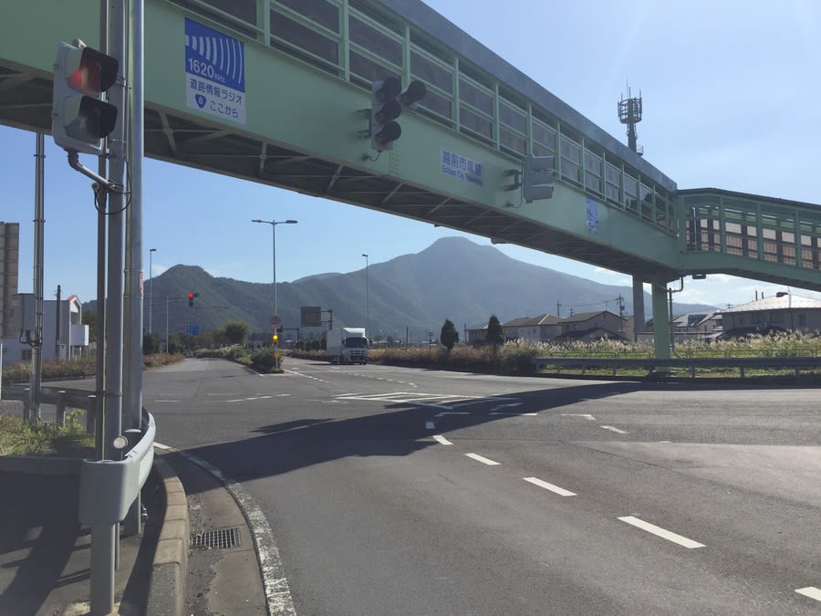 あっと言うまに越前市の塚原交差点に到着 9時21分。 正面の山は越前富士の日野山です